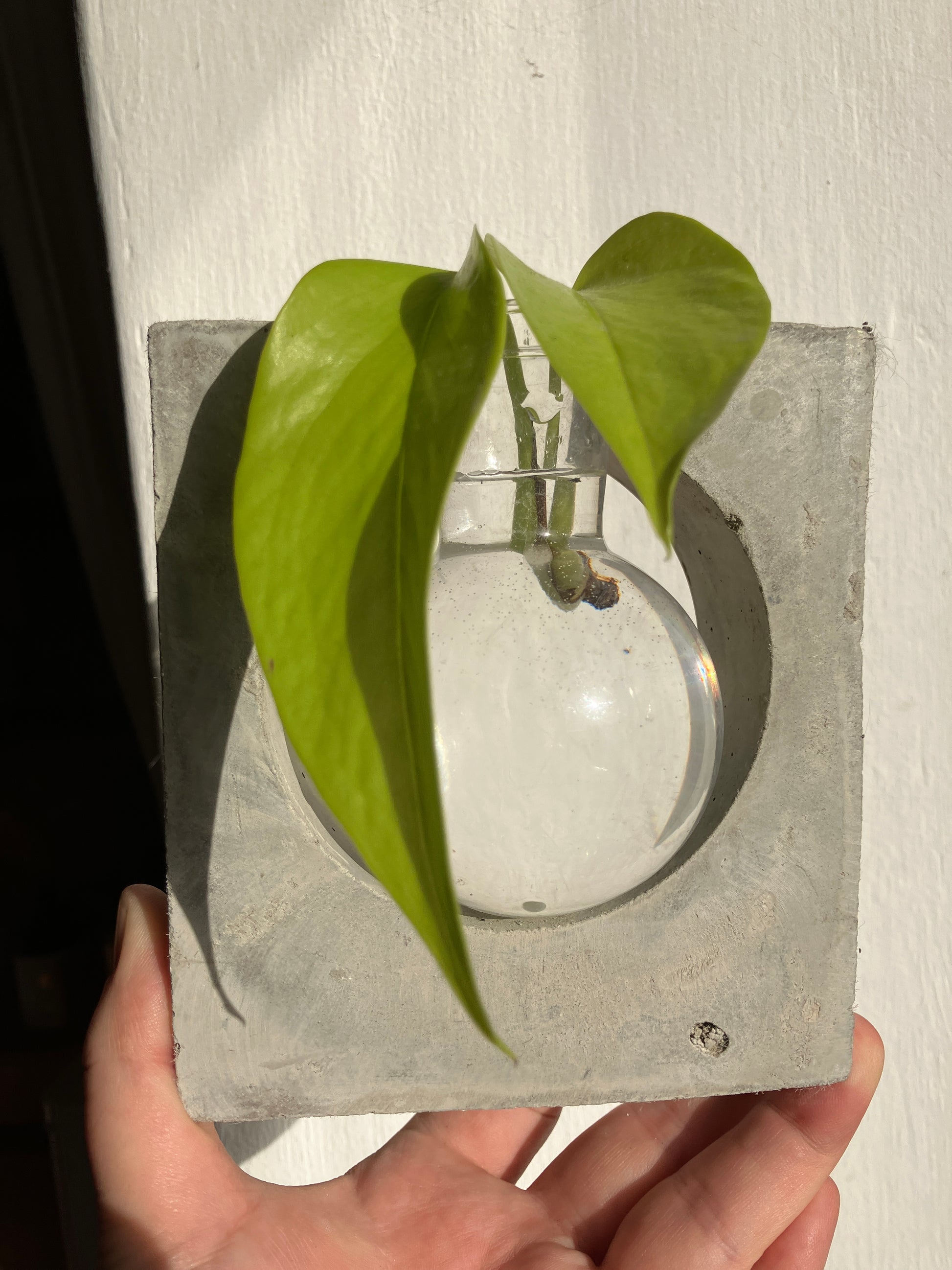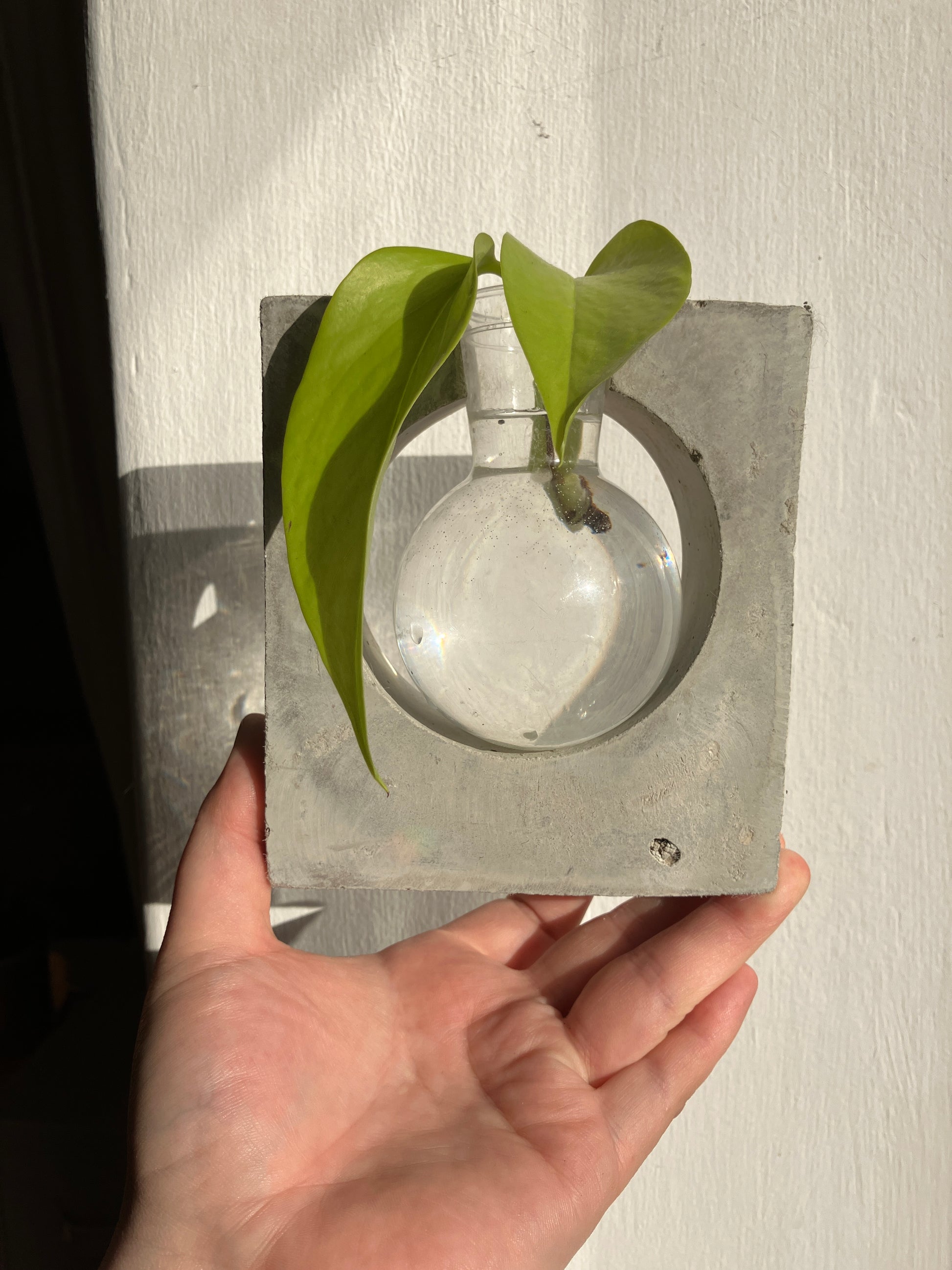 Presenting our Florence propagation vase. With a large bulb vase to allow those roots to develop, this propagation vase allows plenty of light and water access to your cuttings. Perfect for single stem flowers or propagation. Handmade at our Studio in Frome, Somerset and cast from concrete using local aggregates and sustainable methods. Each side has a smooth polish finish and a cork base to protect your furniture.